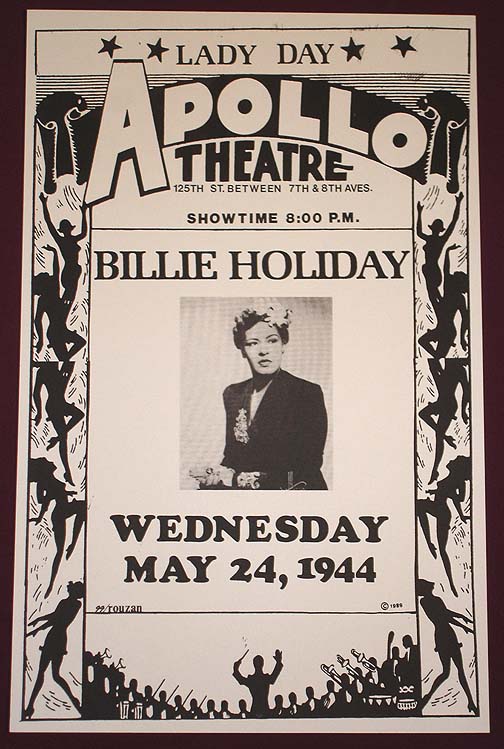 John Hammond, o eterno promotor de Billie convence Irving Mills (1894-1985), o empresário de Duke Ellington (Edward Kennedy "Duke" Ellington 1899-1974) de que ela e a cantora ideal para Simphonny in Black, um curta-metragem de nove minutos de duração que "Duque" está preparando e cuja produção é garantida por Fred Waller (1886-1954) promotor e posteriormente o inventor do Cinerama em 1950. O cenário é simplista. Um triângulo amoroso, duas mulheres e um homem. No papel da mulher desprezada entra Billie, que canta uma peça escolhida por Duke especialmente para ela, “Saddest Tale”, uma soberba canção de blues em que seu fraseado recorda o estilo vocal de Bessie Smith (1894-1937) . Ela se agarra ao homem que a deixou por outra. Ele a joga ao assoalho com um empurrão. Ela continua a cantar no chão, mesmo vencida e machucada. São as queixas de uma amante desprezada, mas também a paixão de uma mulher por seu homem. Duke Ellington demonstrou grande discernimento, ele viu em Billie aquela que não tinha qualquer chance, uma mulher a quem se mente e a quem se nega amor. Perfeitamente normal que ele tenha escolhido para o papel de vitima. Quanto ao ator, o dançarino Earl “Snakehips” Tucker (1905-1937), chamado de boa constrictor (jibóia) por seu contorcionismo por inventar o estilo de dança “Snakehips” (quadril de cobra) em 1930. De uma elegância arrastadora, faz o tipo perfeito do cafetão. Ela só tinha dezoito anos. Seu corpo desabrocha, seu rosto é encantador sobe os cabelos curtos. Suas bochechas arredondadas lhe dão certo aspecto de ingenuidade e candura. O timbre rouco de sua voz comunica perceptivelmente a mágoa pungente. É como se fosse à primeira ferida causada à inocência. Desde seu primeiro aparecimento no cinema, Billie alcança total sucesso em criar um personagem cuja vida e canções se confundem. Essa osmose imediata acrescenta a seu desempenho uma força singular, a sensação de que ela revela ao cantar uma verdade que se encontra a ponto de aflorar. Mas aquela de quem se fala muito então é uma nova cantora de dezoito anos, que faz dançarem as multidões que acorrem ao Savoy Ballroom, uma garota que saiu do nada e que se produziu com uma das melhores orquestras do momento, do percursionista Chick Webb (William Henry Webb 1905-1939). Essa garota sem a menor experiência hipnotiza as multidões que vão ao Savoy. Billie precisa ver por si mesmo. Ao chegar ao grande salão de baile, ela sobe a majestosa escadaria de pilares de mármore, iluminada por lustres de vidro laminado. Imensa sala de dança está abarrotada de gente. Ela se enfia discretamente em um canto sem sequer tirar o casaco. Mas essa Ella Fitzgerald de fato é excelente... Que energia! Ela estala os dedos enquanto canta, martela o chão com os pés para marcar o ritmo. Tem um embalo dos infernos, essa peste. Como ela gostaria de estar em seu lugar, a estrela do Savoy, cantando com a grande orquestra de Chick Webb, em vez de estar escondida em um restaurante, cantando no meio de barulho dos talheres contra os pratos, meio abafada pelas conversas! Ela não imaginava que dois anos mais tarde em 1937 iria enfrentar Ella Fitzgerald nesse mesmo Savoy Ballroom, acompanhada por Count Basie (William "Count" Basie 1904-1984) e sua orquestra, e seus admiradores respectivos discutindo durante anos qual duplas, Holiday/Basie ou Frizgerald/Webb, estivesse conseguido superar a outras. Mas por agora essa concorrente expansiva, de dinamismo irresistível a deixou inquieta. A carreira de Ella esta deslanchando como impulsionada pela roda da fortuna. É um reconhecimento imediato, enquanto Billie tem o sentimento de que sua está patinando. Todavia em abril de 1925, Billie é beneficiada por um golpe de sorte na pessoa de Ralph Cooper (1908- 1992), apresentador famoso e estrela no Apollo Theater e uma celebridade no Harlem. Acaba de montar sua orquestra. Um dia em que está jantando no Hot-Cha, uma jovem cantora sobe à pequena plataforma no canto do restaurante. Não lhe chama nenhuma atenção em particular, está habituado com todo tipo de gente envolvida no show business. Entretanto, no momento em que escuta sua voz, ele esquece seu espaguete. (“Foi nesse momento que eu observei que ela era linda, que tinha um sorriso encantador e sobretudo que cantava de um jeito como jamais escutara antes. Dava a impressão de que chorava ao cantar...Eu nunca havia escutado uma voz assim, descansada, tranqüila, ao mesmo tempo lânguida e sensual. Aquilo não era blues, eu nem sequer sabia do que se tratava”). Depois de haver organizado numerosas “noites” de calouros no Apollo, Ralph Cooper sabia perfeitamente detectar um talento quando cruzava com um. Pede logo para falar com o gerente do Hot-Cha. Ele promete citar seu restaurante durante a transmissão de rádio difundida diretamente do palco do Apolo, se ele concordar em emprestar-lhe Billie. Tão logo acabou de apresentar seus números, ele já lhe propôs ser a cantora de sua orquestra. Billie esta no céu. Ralph Cooper é conhecido por seu bom gosto em matéria de artista e é, além disso, um personagem muito influente. Sua grande orquestra vai alcançar o maior sucesso. Com o coração batendo forte no peito, Billie chega ao Apolo para seu primeiro ensaio com a orquestra. Na hora mandam que volte pra casa a fim de escolher um vestido adequado para o palco. De fato, ela não tem nada à altura, e Cooper lhe compra um vestido e um par de sapatos. O ensaio não chega a um resultado definitivo. A orquestra não tem muita fé em sua futura apresentação. Mas Cooper tem confiança em sua intuição. Billie canta algumas canções de amor que não comovem muito o difícil publico do Apolo, mas é notada pela imprensa que a menciona como ”uma cantora fértil de encanto”, e também a chama de Torch Singer, “uma cantora que queima de paixão”. Seja com for Cooper propõe que fique uma segunda semana. Por precaução também contrata um can